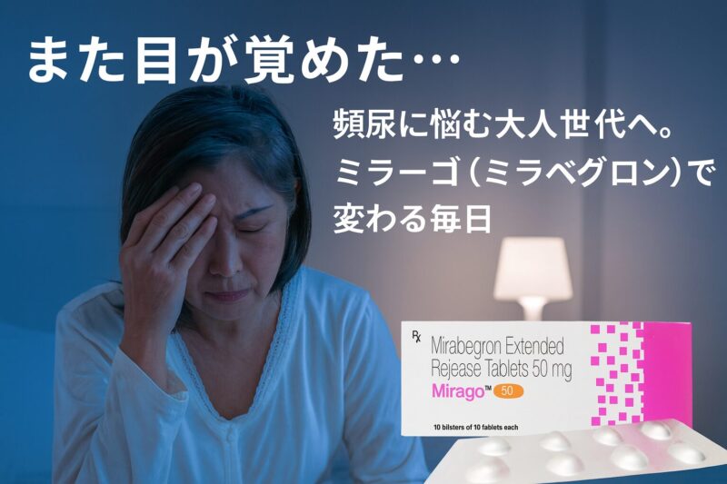 実はその頻尿、過活動膀胱が関係している可能性があります。そして近年、その治療薬として注目されているのが、ミラベグロンを有効成分とする薬です。今回はその中でも、ミラーゴ(ミラベグロン)50mgに焦点を当て、「頻尿に悩む毎日がどう変わるのか」、そして無理なく続けるための選択肢について、わかりやすくお話ししていきます。